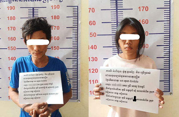 ជនសង្ស័យជាគូស្នេហ៍ដែលត្រូវបានសមត្ថកិច្ចចាប់ឃាត់ខ្លួន ទី១-ឈ្មោះហង្ស សុខ ភេទប្រុស អាយុ៣៦ឆ្នាំ មុខរបរមិនពិតប្រាកដ មានស្រុកកំណើតភូមិស្វាយដង្គុំ សង្កាត់ស្វាយដង្គុំ ក្រុងសៀមរាប និងលំនៅបច្ចុប្បន្ន នៅភូមិវាល សង្កាត់គោកចក ក្រុងសៀមរាប (មុខសញ្ញាទើបចេញពីពន្ធនាគារ ពាក់ព័ន្ធករណីគ្រឿងញៀន) និងទី២-ឈ្មោះចាន់ ដារ៉ា ភេទស្រី អាយុ២១ឆ្នាំ មុខរបរមិនពិតប្រាកដ មានស្រុកកំណើតនិងលំនៅបច្ចុប្បន្ន នៅភូមិវត្តបូព៌ សង្កាត់សាលាកំរើក ក្រុងសៀមរាប។