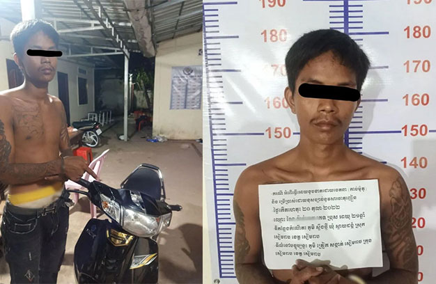 ខេត្តសៀមរាប : កម្លាំងនគរបាលផ្នែកព្រហ្មទណ្ឌ ក្រុងសៀមរាប ដឹកនាំដោយលោកវរសេនីយ៍ទោ ដា ចម្រើន អធិការក្រុងសៀមរាប បានឃាត់ខ្លួនជនសង្ស័យ ចំនួន០១នាក់ ពាក់ព័ន្ធនឹងករណីធ្វើឲ្យខូចខាតដោយចេតនា (កាប់ម៉ូតូ) និងប្រើប្រាស់ដោយខុសច្បាប់នូវសារធាតុញៀន (ជាមុខសញ្ញាធ្លាប់ជាប់ពន្ធនាគារ ករណីហិង្សាដោយចេតនាមានស្ថានទម្ងន់ទោស) និងមានដីកាបង្គាប់ឲ្យចាប់ខ្លួន ពីតុលាការ ផងដែរ ។