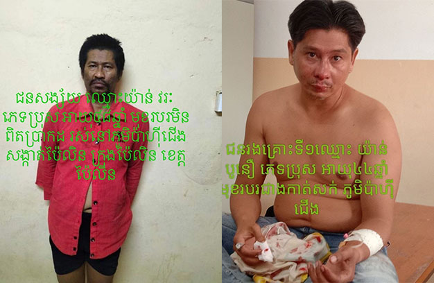 ជនរងគ្រោះក្នុងករណីហិង្សាខាងលើ មានចំនួន២នាក់ ទី១-ឈ្មោះយ៉ាន់ បូនឿ ភេទប្រុស អាយុ៤៤ឆ្នាំ មុខរបរជាងកាត់សក់ រស់នៅ ភូមិប៉ាហ៊ីជើង សង្កាត់ប៉ៃលិន ក្រុងប៉ៃលិន (រងរបួសបែកក្តោងច្រមុះ) ត្រូវជាប្អូនបង្កើតរបស់ជនសង្ស័យ។ និងទី២-ឈ្មោះលី ហ៊ុយ ភេទប្រុស អាយុ៣៤ឆ្នាំ មុខរបរជាប្រជាការពារ រស់នៅភូមិប៉ាហ៊ីជើង សង្កាត់ប៉ៃលិន ក្រុងប៉ៃលិន (រងរបួសធ្ងន់បាក់ដៃខាងឆ្វេង និងហើមក្បាលផ្នែកខាង លើ)។ ចំណែកជនសង្ស័យដែលត្រូវសមត្ថកិច្ចចាប់ឃាត់ខ្លួន មានឈ្មោះយ៉ាន់ វរៈ ភេទប្រុស អាយុ៤៨ឆ្នាំ មុខរបរមិនពិតប្រាកដ មានលំនៅ ភូមិប៉ាហ៊ីជើង សង្កាត់ប៉ៃលិន ក្រុងប៉ៃលិន។