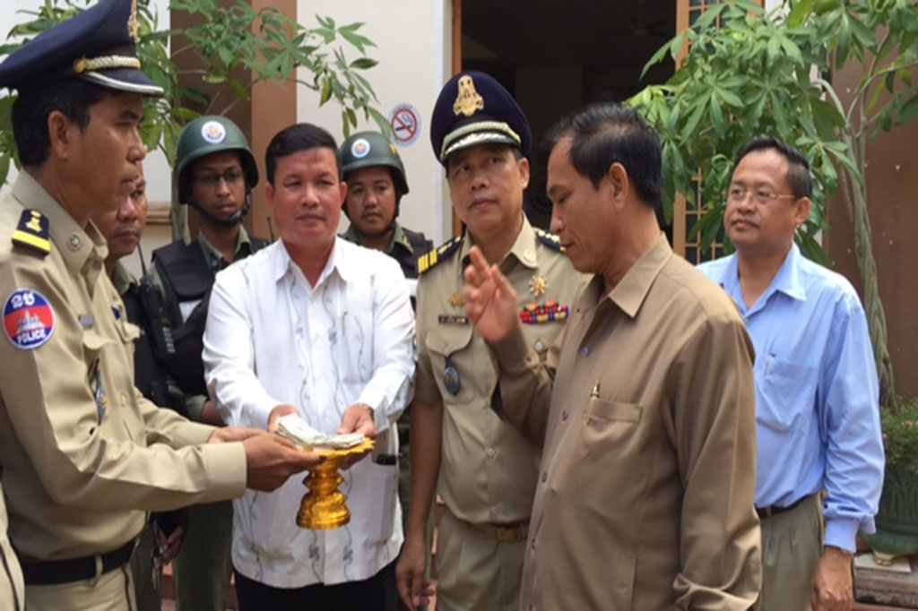 ភ្នំពេញ៖ នៅព្រឹកថ្ងៃទី១២ ខែកក្ដដា នៅអធិការដ្ឋានខណ្ឌចំការមន ដោយមានការដឹកនាំ ដោយលោក យិន សាន អធិការខណ្ឌចំការមន លោកព្រុំ សំខាន់ គណ:អភិបាលខណ្ឌចំការមន និងលោក ខាត់ ណារិទ្ធ ចៅសង្កាត់ទន្លេបាសាក់ បានផ្ដល់ប្រាក់ឧបត្ថម្ភចំនួន២លានរៀលដល់កម្លាំងអន្តរាគមន៍ខណ្ឌចំការមន និងនគរបាលប៉ុស្តិ៍ទន្លេបាសាក់ ដែលបង្រ្កាបបានខ្មាញ់កាំភ្លើងបាញ់សម្លាប់លោក កែម ឡី អ្នកវិភាគនយោបាយឯករាជ្យ កាលពី ថ្ងៃទី១០ ខែកក្កដា កន្លងមកនេះ ។