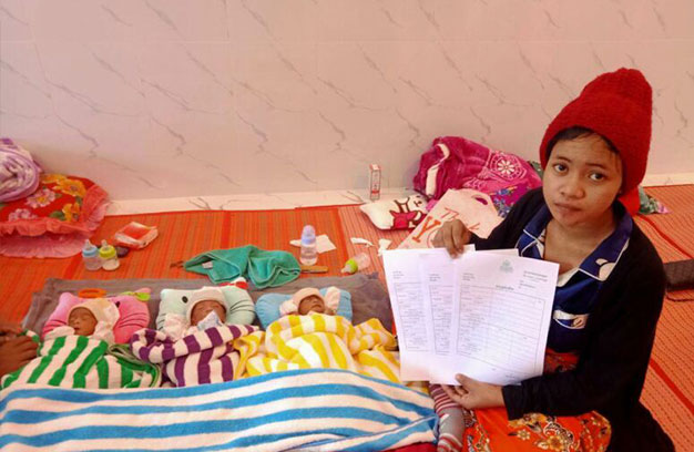 លោកមេឃុំ បានបន្តថា ក្រោយពេលរៀបការ ពួកគេបានរស់នៅជាមួយម្តាយជាស្ត្រីមេម៉ាយឈ្មោះសួស ម៉ើ ប៉ុន្តែដោយសារជួបការលំបាកបញ្ហាជីវភាព ពួកគេក៏បានទៅធ្វើជាកម្មកររោងចក្រ នៅរាជធានីភ្នំពេញ ទាំង២នាក់ប្តីប្រពន្ធ រហូតមានផ្ទៃពោះ។ លុះក្រោយពីពិនិត្យអេកូ ឃើញមានកូនភ្លោះ៣ ធ្វើឱ្យប្តីប្រពន្ធអ្នកទាំងពីដេកភ័យផងអរផង ព្រោះសប្បាយចិត្តពេលកើតកូនម្តងបានដល់ទៅ ៣នាក់ ប៉ុន្តែអ្វីដែលត្រូវពិបាកចិត្តនោះ គឺជីវភាពកំពុងតែក្រីក្រ ធ្វើការរកប្រាក់ចិញ្ចឹមឆ្នាំងសឹងមិនគ្រប់ ហេតុនេះមិនដឹងថាត្រូវចិញ្ចឹមកូនភ្លោះ ៣នាក់ ដោយរបៀបណាឡើយ។