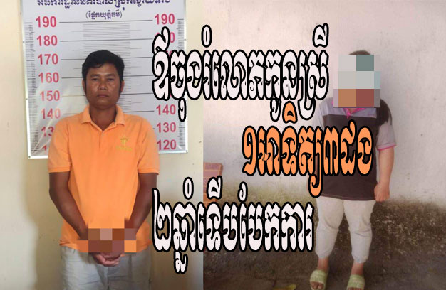 ខេត្តស្វាយរៀង ៖ បុរសជាឪពុកចុង ល្មោភកាមម្នាក់ បានលួងលោមកូនស្រីរបស់ ខ្លួន រួមភេទ ដោយសន្យាថានឹងទិញរបស់ល្អៗ ឱ្យប្រើ ព្រមទាំងធានារ៉ាប់រងចិញ្ចឹមនាងអស់ ១ជីវិត ធ្វើឱ្យកូនស្រីទន់ចិត្ត ចេះតែសម្ងំស្ងៀម ឱ្យឪពុកចុងរួមភេទ ១អាទិត្យ៣ដង និងចេះ តែបន្តសកម្មភាពបែបនេះ អស់រយៈពេល ២ឆ្នាំ ទីបំផុតរឿងរ៉ាវបែកធ្លាយ សមត្ថកិច្ច ចាប់វាយខ្នោះឪពុកចុងល្មោភកាម នាំយក ទៅចាត់ការតាមច្បាប់។