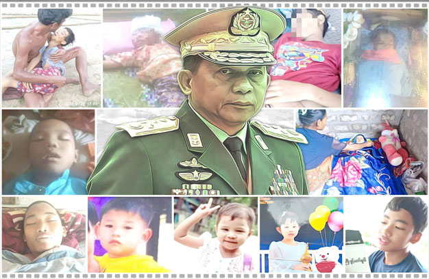 យោងតាមក្រសួងកិច្ចការនារី យុវជន និងកុមាររបស់រដ្ឋាភិបាលរួបរួមជាតិ (NUG) បានឱ្យដឹងថាកាលពីឆ្នាំមុន កុមារចំនួន៩០នាក់ត្រូវបានសម្លាប់ដោយទាហានរបបនេះ។យោងតាមទិន្នន័យដែលប្រមូលបានដោយ The Irrawaddyការវាយប្រហារដោយកាំភ្លើងធំមានចំនួនច្រើនបំផុត ដែលបានសម្លាប់កុមារ។
