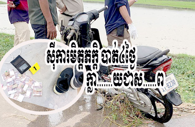 ខេត្តសៀមរាប ៖ បុរសម្នាក់ បានជិះម៉ូតូចេញពីផ្ទះ ដោយប្រាប់ក្រុមគ្រួសារថា ទៅចូលរួមមង្គលការមិត្តភក្តិ រួចក៏បាត់ដំណឹងឈឹង មិនឃើញត្រឡប់មកផ្ទះវិញសោះ ទោះជាក្រុមគ្រួសារព្យាយាមទាក់ទងទូរស័ព្ទផង ដើររកផងយ៉ាងណាក៏នៅតែមិនឃើញ ស្រាប់តែ ៤ថ្ងៃក្រោយមក មានគេប្រទះឃើញសពជនរងគ្រោះដេកស្លាប់ផ្កាប់មុខក្នុងទឹកស្រែ ជាប់នឹងម៉ូតូរបស់ខ្លួន បង្កឱ្យមានការភ្ញាក់ផ្អើលដល់សមត្ថកិច្ច ចុះទៅពិនិត្យភ្លាមៗ ក្រែងជាអំពើឃាតកម្ម លុះពិនិត្យរួច ទើបដឹងថា ជនរងគ្រោះជួបគ្រោះថ្នាក់ចរាចរណ៍ ដួលម៉ូតូចូលទឹកស្រែស្លាប់ដោយខ្លួនឯង។