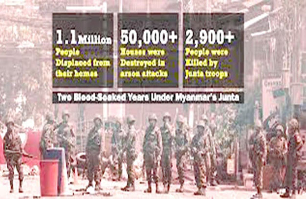 ថ្ងៃពុធទី១ខែកុម្ភៈ២០២៣គឺជាខួប២ឆ្នាំក្រោមការគ្រប់គ្រងដោយយោធាដ៏ឃោរឃៅ។ ចាប់តាំងពីថ្ងៃទី១ខែកុម្ភៈឆ្នាំ ២០២១ដល់ថ្ងៃព្រហស្បតិ៍ទី២ខែកុម្ភៈ ឆ្នាំ២០២៣ របបយោធាក្រោមការដឹកនាំរបស់លោកមីនអ៊ុងឡាំង នេះបាន​សម្លាប់មនុស្ស ២៩៤៧នាក់នៅទូទាំងប្រទេស។ ក្នុងចំណោមអ្នកដែលត្រូវគេសម្លាប់នោះ មានកុមារចំនួន ២៨២​នាក់។ យ៉ាងហោចណាស់មនុស្ស១៧៥២៥ នាក់ រួមទាំងកុមារ៤៨៩នាក់ត្រូវបានចាប់ខ្លួនពីបទប្រឆាំង​ការគ្រប់​គ្រង​របស់យោធានិង១៣៧១៩នាក់កំពុងជាប់ពន្ធនាគារនៅឡើយ។ សាលាក្តីយោធាបានកាត់ទោសប្រហារ​ជីវិតមនុ​ស្ស​ ១៤៣នាក់ រួមទាំងសកម្មជនប្រឆាំងរបបយោធាផងដែរ។