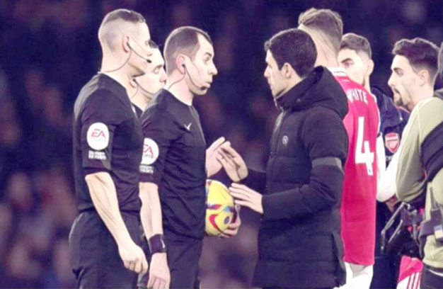 យោងតាមការចេញផ្សាយរបស់បណ្តាញសារព័ត៌មានប៊ីប៊ីស៊ីចេញផ្សាយកាលពីថ្ងៃអង្គារទី ១៤ ខែកុម្ភៈឆ្នាំ ២០២៣បានឲ្យដឹងថាលោកMikel Arteta គ្រូបង្វឹកក្លឹបកាំភ្លើងធំArsenalមិនពេញចិត្តនឹងការសុំទោសរបស់មន្ត្រីVAR តែលោកពេញចិត្តប្រសិនបើក្រុម Arsenal ទទួលបានពីរពិន្ទុត្រឡប់មកវិញសម្រាប់កំហុស VAR ដែលអនុញ្ញាតឱ្យក្រុម Brentford តាមស្មើក្នុងការប្រកួត ប្រឺមីញេលីកកាលពីថ្ងៃសៅរ៍សប្តាហ៍មុន។