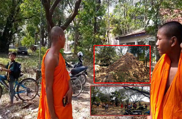 ព្រៃវែង ៖ ជនទុច្ចរិតមិនស្គាល់មុខ ១ក្រុម ទំនងជាមានគ្នាច្រើន និងមានទាំងកម្លាំងគ្រឿងចក្រផងបាននាំគ្នា ចូលទៅធ្វើសកម្មភាពលួចជីកកំណប់ នៅក្នុងបរិវេណវត្តមួយកន្លែង ស្ថិតក្នុងស្រុកស្វាយអន្ទរ ខណៈដែល ព្រះចៅអធិការវត្ត បានប្រាប់ថា ព្រះអង្គសិងលក់ តាំងពីព្រលប់ មិនដឹងរឿងឡើយ រីឯនេនខ្លះប្រាប់ថាដឹងដែរ តែមិនហ៊ានដាស់ព្រះចៅអធិការ លុះព្រឹកឡើង ទើបព្រះសង្ឃ និងប្រជាពលរដ្ឋ ចោមរោមមើលរណ្តៅដីដែល ទើបនឹងជីកកកាយថ្មីៗ និងមិនទាន់បានលុបវិញនៅឡើយ។