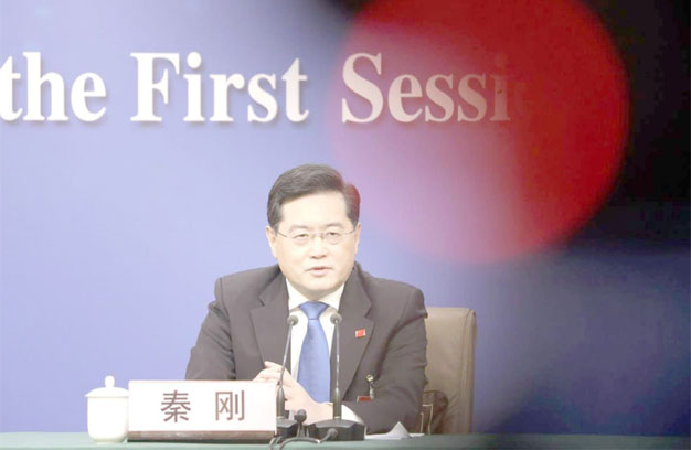 ថ្លែងនៅក្នុងសន្និសីទសារព័ត៌មានលើកដំបូងក្នុងនាមជារដ្ឋមន្ត្រីការបរទេសក្នុងសម័យប្រជុំសភាប្រចាំឆ្នាំនៅទីក្រុងប៉េកាំង លោកQinបាននិយាយថាដំណោះស្រាយបញ្ហាតៃវ៉ាន់គឺជាបញ្ហាសម្រាប់ប្រជាជនចិនហើយគ្មានប្រទេសណាមួយមានសិទ្ធិជ្រៀតជ្រែកឡើយ។