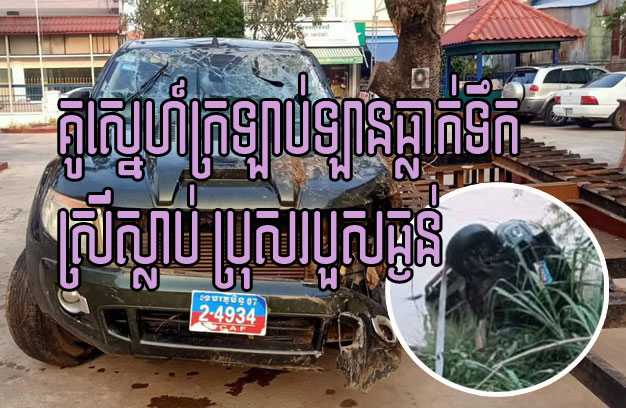 ខេត្តពោធិ៍សាត់ ៖ គូសង្សារមួយគូ ទើបនឹងជួបជុំមិត្តភក្តិផឹកស៊ីស្រវឹងធ្លាក់ភ្នែក ឡើងបើករថយន្តត្រឡប់មកផ្ទះវិញ ស្រាប់តែរេចង្កូតក្រឡាប់ធ្លាក់ទឹកស្ទឹង បណ្តាលឱ្យនារីជាសង្សារ ស្លាប់យ៉ាងអាណោចអាធ័ម ចំណែកបុរសជាអ្នកបើកបរ រងរបួសធ្ងន់ និងត្រូវបានដឹកបញ្ជូនទៅសង្គ្រោះនៅមន្ទីរពេទ្យភ្លាមៗ។