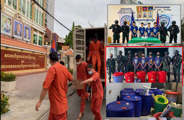ភ្នំពេញ ៖ បុរសជនជាតិចិនតៃវ៉ាន់ ៤នាក់ ដែលទទួលខុសត្រូវខ្ពស់បំផុតនៅក្នុងរោងចក្រកែច្នៃផលិតគ្រឿងញៀន នៅក្នុងទឹកដីខេត្តកំពង់ស្ពឺ ត្រូវបានចៅក្រមសាលាដំបូងរាជធានីភ្នំពេញលើកយកមកកាត់ទោស នាថ្ងៃទី០៩ ខែ មីនា ឆ្នាំ២០២៣។