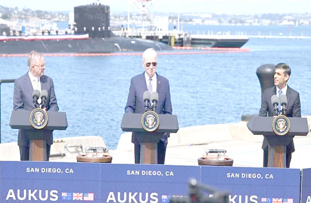 សហរដ្ឋអាមេរិក ចក្រភពអង់គ្លេស និងអូស្ត្រាលី បានបង្ហាញព័ត៌មានលម្អិតអំពីផែនការរបស់ពួកគេក្នុងការ បង្កើតកងនាវាមុជទឹកដើរដោយថាមពលនុយក្លេអ៊ែរថ្មី សំដៅទប់ទល់ឥទ្ធិពលរបស់ចិននៅក្នុងតំបន់ ឥណ្ឌូប៉ាស៊ីហ្វិក។
