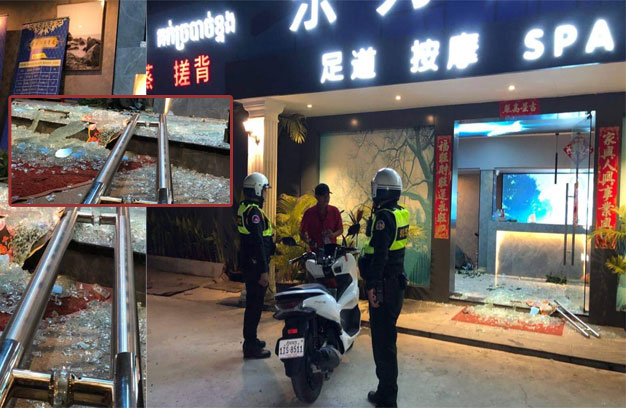 តាមប្រភពពីកន្លែងកើតហេតុ បានឱ្យដឹងថា ដំបូងឡើយ គេមិនដឹងថា មានរឿងអ្វីនោះទេ ស្រាប់តែនៅសុខៗ ឃើញមានបុរសជនជាតិខ្មែរ ចំនួន៥នាក់ រួមនិងជនជាតិចិន ម្នាក់ផង ប្រដាប់ដោយដែកបំពង់ទីបបាននាំគ្នា ដើរចូលទៅក្នុងហាងខាងលើ រួចធ្វើសកម្មភាពវាយទ្វារ កញ្ចក់បំបែក ព្រមទាំងវាយថូផ្កាធំមួយ បែកថែមទៀត និងធ្វើឱ្យស្ត្រីអ្នកគិតលុយប្រចាំហាងម៉ាស្សាខាងលើម្នាក់ រងរបួសទៀតផង។
