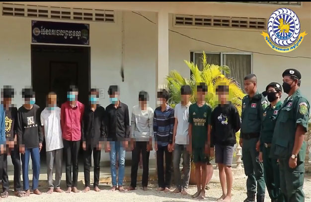ព្រៃវែង ៖ កម្លាំងនគរបាលស្រុកពារាំង សហការជាមួយកម្លាំងប៉ុស្តិ៍រដ្ឋបាលនគរបាលកំពង់ពពិល បានធ្វើការ ឃាត់ខ្លួនក្រុមក្មេងទំនើង សរុបចំនួន១៥នាក់ ពាក់ព័ន្ធករណីប្រើប្រាស់អាវុធដោយគ្មានការអនុញ្ញាត លុះបន្ទាប់ ពីធ្វើការសួរនាំរួច សមត្ថកិច្ចជំនាញ បានសម្រេច រៀបចំកសាងសំណុំរឿង បញ្ជូនក្រុមទំនើងទាំង១៥នាក់ ឡើង តុលាការតែម្តង។