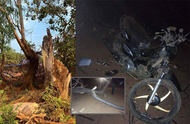 ក្រមុំជិះម៉ូតូបុកដើមឈើ បាក់ជើង១ ស្លាប់១