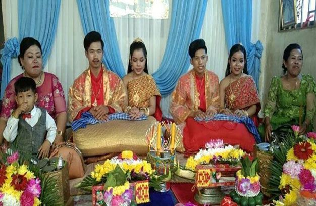 តាមសម្តីបុរសឈ្មោះហាម ចាន់តារា អាយុ៥៧ឆ្នាំ និងស្ត្រីជាប្រពន្ធឈ្មោះម៉ៅ សុចាន់ណា ត្រូវជាឪពុកម្តាយបង្កើតរបស់កូនកំលោះ ទាំង២នាក់ បានរៀបរាប់ប្រាប់ថា កូនកំលោះរបស់គាត់ទាំង២នាក់ ដែលរៀបការក្នុងថ្ងៃតែ១នេះ ទី១-ឈ្មោះរ៉ា ចាន់រក្សា អាយុ២០ឆ្នាំ និងទី២-ឈ្មោះរ៉ា ចាន់ខាំឈីត អាយុ១៨ឆ្នាំ។ រីឯខាងកូនក្រមុំភ្លោះ ទី១-ឈ្មោះម៉ាប់ ផល្លី អាយុ១៨ឆ្នាំ និងទី២-ឈ្មោះម៉ាប់ ផល្លា អាយុ ១៨ឆ្នាំ ដូចគ្នា មានស្រុកកំណើត នៅចំណុចប្រឡាយ៧០ ក្នុងភូមិគោកត្រប់ ឃុំតាម៉ឺន ស្រុកថ្មគោល ខេត្តបាត់ដំបង មានម្តាយឈ្មោះគយ ចន្ធូ ជាស្ត្រីមេម៉ាយ។