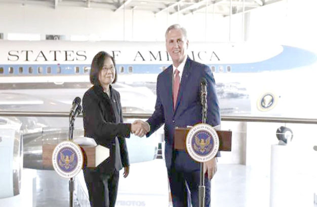 នៅក្នុងជំនួបកាលពីថ្ងៃពុធទី៦ខែមេសាឆ្នំា២០២៣រវាងប្រធានសភាអាមេរិកលោកខេវីន ម៉ាក់ខាធី (Kevin McCarthy )និងប្រធានាធិបតីតៃវ៉ាន់លោកស្រីធីសៃអ៊ីងវេន នៅទីក្រុង Simi Valleyរដ្ឋកាលីហ្វ័រនីញ៉ា សហរដ្ឋអាមេរិក