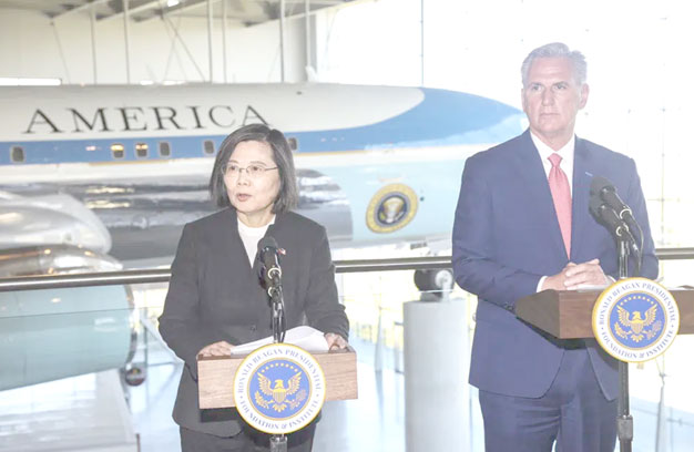 ប្រធានសភាមកពីគណបក្សសាធារណរដ្ឋ លោក Kevin McCarthy បានជួបពិភាក្សាកាលពីថ្ងៃពុធជាមួយប្រធានាធិបតី ធីសៃអ៊ីងវេននៅបណ្ណាល័យ Reagan ក្នុងទីក្រុង Simi Valley រដ្ឋកាលីហ្វ័រញ៉ា ប្រឆាំងទៅនឹងការព្រមានរបស់ចិន។ លោកខេវីន ម៉ាក់ខាធីបានចូលរួមជាមួយ