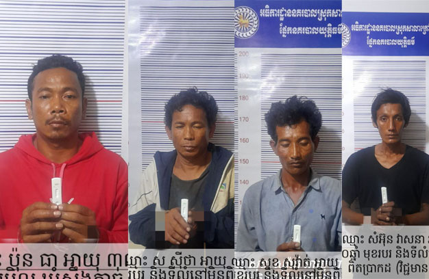 ជនសង្ស័យទាំង៤នាក់ ដែលត្រូវបានសមត្ថកិច្ចចាប់ឃាត់ខ្លួន រួមមាន ទី១-ឈ្មោះសំអ៊ុន វាសនា ភេទប្រុស អាយុ៣០ឆ្នាំ មុខរបរមិនពិតប្រាកដ មានលំនៅមិនពិតប្រាកដ (មុខសញ្ញាលួចយ៉ាងសកម្ម)។ ទី២-ឈ្មោះប៉ុន ធា ភេទប្រុស អាយុ៣៤ឆ្នាំ មានលំនៅ ភូមិអូររអិល ឃុំស្ទឹងកាច់ ស្រុកសាលាក្រៅ។ ទី៣-ឈ្មោះស ស៊ីថា ភេទប្រុស អាយុ៤២ឆ្នាំ មុខរបរ និងលំនៅមិនពិតប្រាកដ និងទី៤-ឈ្មោះសុខ សុវ៉ាត ភេទប្រុស អាយុ៣៨ឆ្នាំ មុខរបរ និងលំនៅមិនពិតប្រាកដ។