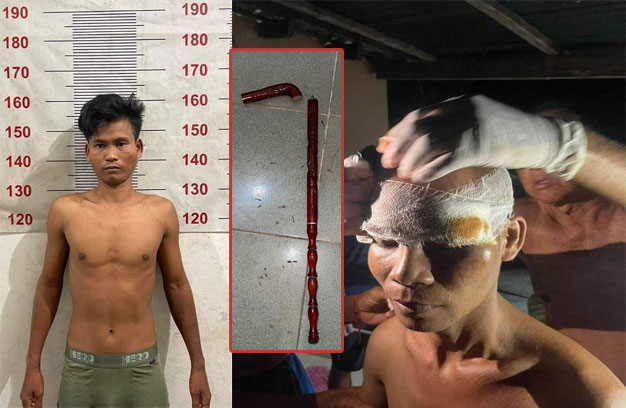 លោកអធិការរង បានបន្តថា មុនពេលកើតហេតុ ក្រុមគ្រួសាររបស់ជនសង្ស័យ ដោយសារតែឃើញជនសង្ស័យ មានអាការប្លែកៗខុសពីធម្មតានោះ ទើបម្តាយក្មេក និងប្រពន្ធរបស់ជនសង្ស័យ បាននាំជនសង្ស័យទៅរកព្រះ គ្រូចៅអធិការវត្តខ្វាន់ទៀង ដើម្បីស្រោចទឹក ប្រោះព្រំ និងស្តោះផ្លុំឱ្យ ទៅតាមជំនឿ។ ខណៈពេលទៅជួបនឹង ព្រះចៅអធិការវត្ត ស្រាប់តែនៅសុខៗជនសង្ស័យ ស្ទុះទៅទាញឈើច្រត់របស់ព្រះចៅអធិការ វាយទៅលើព្រះ អង្គ បណ្តាលឱ្យរងរបួសបែកចុងចិញ្ចើម ហូរឈាមស្រោចព្រះកាយតែម្តង។