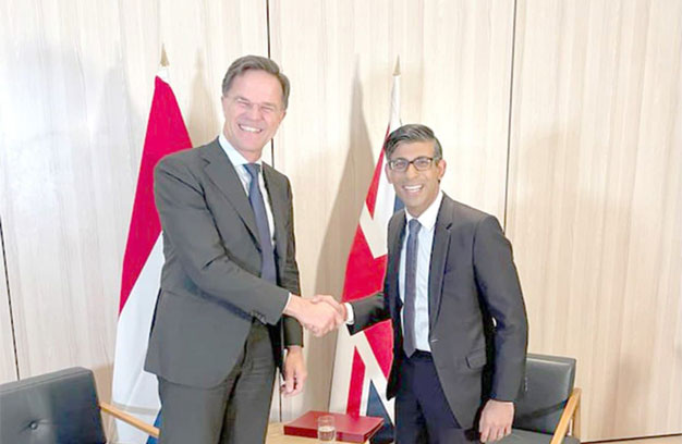 សេចក្តីថ្លែងការនោះបានសង្កត់ធ្ងន់ថា លោកSunak និង Rutte បានយល់ព្រមថាពួកគេនឹងបង្កើត សម្ព័ន្ធអន្តរជាតិដើម្បីផ្តល់ឱ្យអ៊ុយក្រែននូវសមត្ថភាពប្រយុទ្ធតាមផ្លូវអាកាសដោយគាំទ្រជាមួយនឹងអ្វីគ្រប់យ៉ាងចាប់តាំងពីការហ្វឹកហាត់រហូតដល់ការទិញយន្តហោះ F16។ នាយករដ្ឋមន្ត្រីទាំងពីរមិនបានបញ្ជាក់ឈ្មោះប្រទេសដែលអាចផ្តល់ជូនយន្តហោះចម្បាំងផលិតដោយអាមេរិក ប៉ុន្តែបានស្នើថាលោកនឹងជំរុញសម្ព័ន្ធមិត្តដើម្បីជួយសម្រួលដល់ការផ្ទេរអាវុធ។