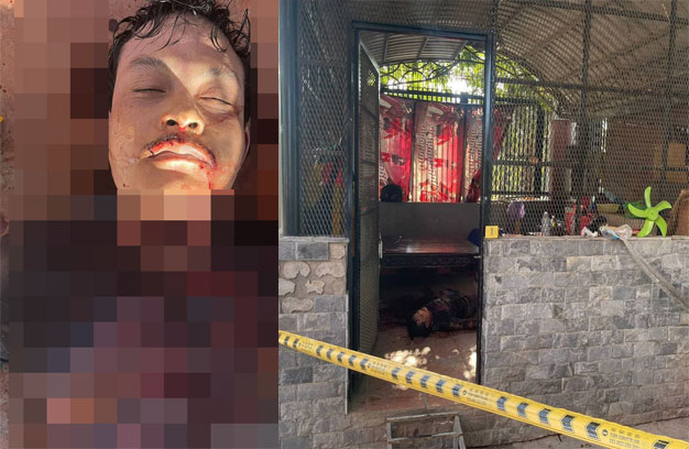 ក្រោយកើតហេតុ សមត្ថកិច្ចជំនាញ បានចុះពិនិត្យនិងធ្វើកោសល្យវិច័យសព រួចបញ្ជាក់ថា សពដេកនៅលើ ឥដ្ឋកន្សែងក្រហម ដោយដាច់បំពងខ្យល់ ស្លៀកខោអាវ នៅជិតសព មានកាំបិតប៉័ងតោ ចំនួន៣ មានទូរស័ព្ទដៃ ១គ្រឿង ម៉ូតូ ១គ្រឿង និងកូនកាំបិតចិតបន្លែ ដែលជន រងគ្រោះធ្វើសកម្មភាពអារក នៅចម្ងាយ ២,៥ម៉ែត្រ។ ដោយ ឡែក ស្លាកស្នាមនៅលើសព មានស្នាមដាច់កំពង់ក ប្រវែង៨សង់ទីម៉ែត្រ គុណនឹង ៣សង់ទីម៉ែត្រ ជម្រៅដល់ ឆ្អឹងកងក ដៃខាងឆ្វេង មានស្នាមរបួសត្រង់កដៃផ្នែកខាងក្រៅ មានស្នាមចំនួន៣កន្លែង។ ពិនិត្យទឹកនោម មាន សារធាតុញៀន។