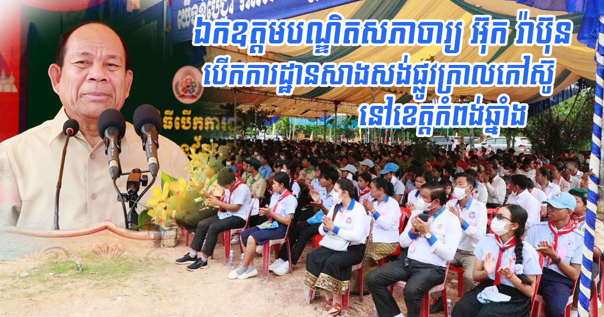 ខេត្តកំពង់ឆ្នាំង ៖ នៅព្រឹកថ្ងៃទី០៧ ខែមិថុនា ឆ្នាំ២០២៣ ឯកឧត្តមបណ្ឌិតសភាចារ្យ អ៊ុក រ៉ាប៊ុន រដ្ឋមន្រ្ដីក្រសួងអភិវឌ្ឍន៍ជនបទ ប្រធានក្រុមការងាររាជរដ្ឋាភិបាលចុះមូលដ្ឋានខេត្តកំពង់ឆ្នាំង បានអញ្ជើញជាអធិបតី បើកការដ្ឋានសាងសង់ផ្លូវកៅស៊ូពីរជាន់ ប្រភេទ DBST ចំនួន០១ខ្សែ ប្រវែង១២គីឡូម៉ែត្រ និង៣៣០ម៉ែត្រ ដែលតភ្ជាប់ពីភូមិមានជ័យ ទៅដល់ភូមិកងមាស ឃុំគោកបន្ទាយ ស្រុករលាប្អៀរ ខេត្តកំពង់ឆ្នាំង ។