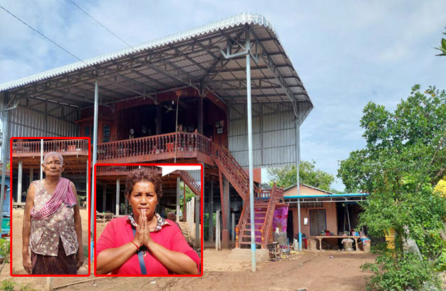 កូនស្រីឈ្មោះសុន សុឃាន់ បានបន្តថា មានពេលមួយនោះ គ្រាដែលគាត់កំពុងដេកលើអង្រឹងក្រោមផ្ទះត្រូវ ម្តាយយកកាំបិតមកកាប់ តែសំណាងគាត់គេចផុត ហើយគ្រាន់តែចំណាយធ្វើផ្ទះនេះ គឺអស់ ២ម៉ឺនដុល្លារ ហើយម្តាយ អស់ ១ម៉ឺនដុល្លារ។ បន្ទាប់មក ដោយសារតែម្តាយនិយាយថា ឱ្យទាំងផ្ទះ ទាំងដី ទើបពេលក្រុម ការងារចុះមកវាស់វែងធ្វើប័ណ្ណកម្មសិទ្ធិដីធ្លីដាក់ឈ្មោះរបស់គាត់ជាកូនស្រី ហើយផ្ទះដែលធ្វើនេះ គាត់បានឱ្យ ម្តាយរស់នៅរហូត មិនឱ្យទៅណាទេ គឺទាល់តែដល់ថ្ងៃស្លាប់តែម្តង។