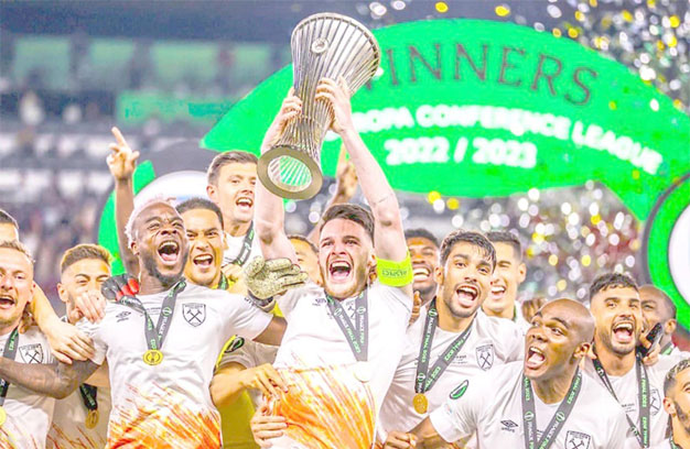 រយៈពេល៤៣ក្នុងការរង់ចាំរយៈដើម្បីលើកពានរង្វាន់ដ៏សំខាន់មួយ ខណៈដែលកីឡាករខ្សែប្រយុទ្ធ West Hamបានបញ្ចប់ក្តីសុបិនរបស់ខ្លួនរយៈពេល៤៣ក្នុងការរង់ចាំរយៈដើម្បីលើកពានរង្វាន់ដ៏សំខាន់មួយ ខណៈដែលកី ឡាករខ្សែប្រយុទ្ធ  Jarrod Bowen បានស៊ុតបាល់បញ្ចូលទីបានមួយគ្រាប់នៅនាទីចុងក្រោយដើម្បីផ្តួល Fiorentina លើកពានរង្វាន់ Europa Conference Leagueនៅទីក្រុងPragueប្រទេសឆែកកាលពីរាត្រីថ្ងៃព្រហស្បតិ៍ ។ជ័យជម្នះនេះក៏បានជួយអោយក្លឹបWest Ham កក់បានកន្លែងមួយសម្រាប់ការប្រកួតពានរង្វាន់ ក្របខណ្ឌយូរ៉ូប៉ា លីកនៅរដូវកាលក្រោយហើយវាក៏ជាប្រវត្តិសាស្ត្រដំបូងរបស់ក្លឹបដែលបានបង្ហាញវត្តមានក្នុងការប្រកួតបាល់ទាត់អឺរ៉ុបបីឆ្នាំជាប់ៗគ្នាផងដែរ។