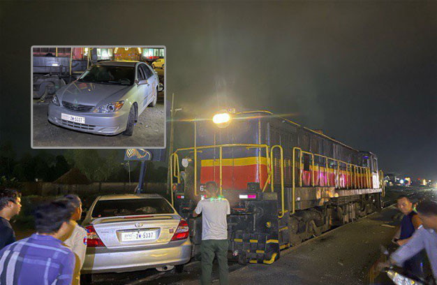បើកឡានឆ្លងផ្លូវដែក រថភ្លើងបុក