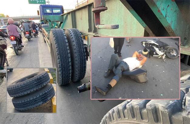 ភ្នំពេញ ៖ រថយន្តកុងតឺន័រ មួយគ្រឿង ខណៈបើកសុខៗ ស្រាប់តែរបូតកង់រ៉ឺម៉កខាងក្រោយ រមៀលទៅបុកម៉ូតូ ម៉ាកហុងដា ឃ្លីក បណ្តាលឱ្យបុរសជាជនពិការម្នាក់ ដែលជាអ្នកបើកម៉ូតូ រងរបួសធ្ងន់ ត្រូវបានបញ្ជូនទៅ សង្គ្រោះនៅមន្ទីរពេទ្យភ្លាមៗ។