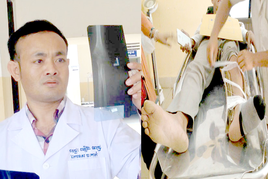 គ្រូពេទ្យយកមែកឈើអមឆ្អឹងបាក់ជនរងគ្រោះ