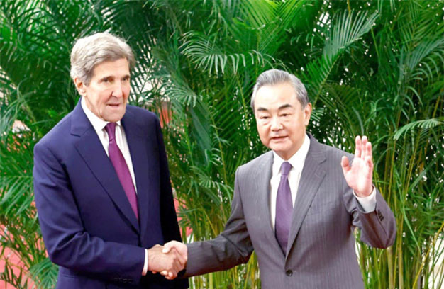 លោក Kerry បានប្រាប់លោក Wang ថា អាកាសធាតុ ដូចដែលអ្នកដឹងហើយ គឺជាបញ្ហាសកល មិនមែនជាបញ្ហា​ទ្វេ​ភា​គី​នោះទេ។វាជាការគំរាមកំហែងដល់មនុស្សជាតិទាំងអស់។លោកបានសង្កត់ធ្ងន់ថានេះគឺជាបញ្ហានៃភាពជាអ្នកដឹកនាំសកលលោកដោយបន្ថែមថាពិភពលោក ពិតជា​សង្ឃឹម​សម្រាប់​រឿងនោះ ហើយត្រូវការវា។