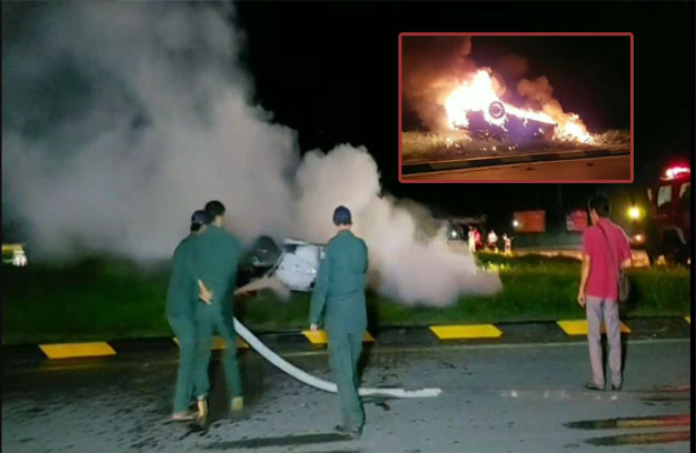 បើកឡានក្រឡាប់ផ្ទុះឆេះ មនុស្ស៣នាក់រួចជីវិត