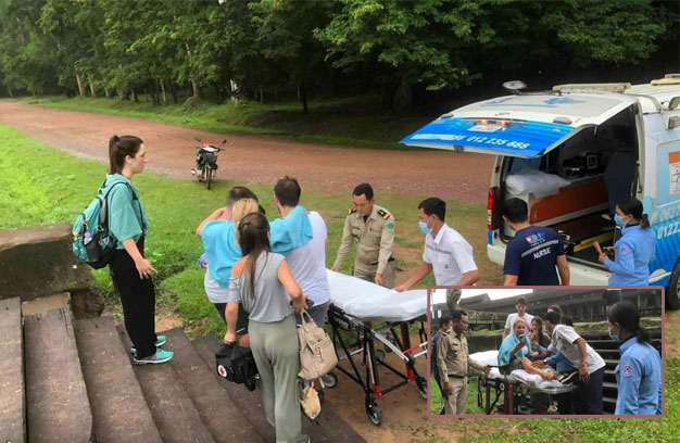 សៀមរាប ៖ ស្ត្រីជនជាតិអេស្ប៉ាញ ជាភ្ញៀវទេសចរម្នាក់ កំពុងដើរទស្សនាប្រាង្គប្រាសាទអង្គរវត្ត ស្រាប់តែ រអិលជើង បណ្តាលឱ្យដួលធ្លាក់ រងរបួសជើងខាងស្តាំ ហើយភ្លាមៗនោះ ត្រូវបានសមត្ថកិច្ច និងក្រុមការងារ អាជ្ញាធរអប្សរា ជួយអន្តរាគមន៍ចាត់បញ្ជូនទៅព្យាបាលនៅឯមន្ទីរពេទ្យភ្លាមៗ។