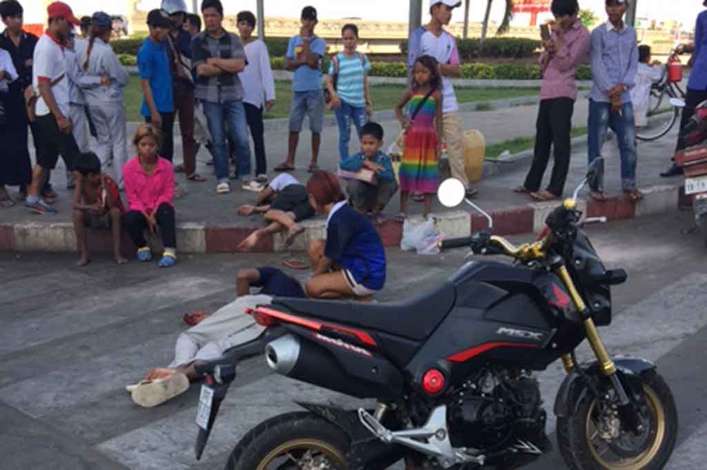 ភ្នំពេញ : ម៉ូតូម៉ាកហុងដា MSX ពណ៍ខ្មៅពាក់ស្លាកលេខភ្នំពេញ១FK ២០៣៩បើកបរ ដោយ យុវជន២នាក់របួសបែកក្បាលធ្ងន់ទាំង២នាក់បើកលឿនពេកជ្រុលទៅបុកមូ៉តូZOOMER.Xពណ៍ខ្មៅពាក់ស្លាកលេខភ្នំពេញ១GE ៦២១៣បើកបរដោយយុវជនដឹកក្មេងស្រីម្នាក់ពេញទំហឹង កាលវេលាម៉ោង៤និង៣០នាទីរសៀលថ្ងៃទី១៣ ខែ មករា ឆ្នាំ ២០១៧នៅចំំណុច ខាងត្បូង ណាហ្គាវើល តាមផ្លូវសួនច្បារសម្ដេចហុ៊នសែនកែងផ្លូវសប៊ិត ក្រុម៧៨ ស្ថិតនៅភូមិ១៤ សង្កាត់ទន្លេបាសាក់ ខណ្ឌចំការមន រាជធានីភ្នំពេញ ។