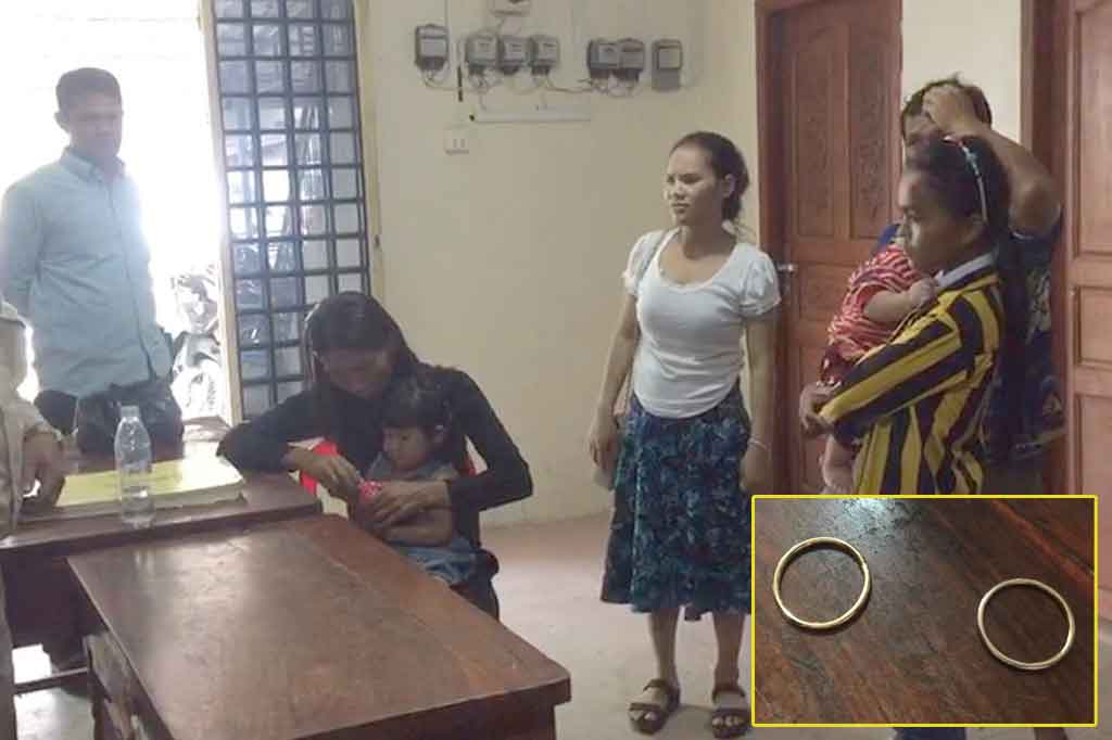 ចំណែកម្តាយក្មេងរងគ្រោះវិញ ខណៈដែលខ្លួន និងក្រុមគ្រួសារ កំពុងរៀបចំ ប្រារព្វពិធីបុណ្យ ឧទ្ទិសកុសលផលបុណ្យ ជូនទៅដល់ បងប្រុសដែលបានចែកឋានទៅហើយនោះ ហើយក៏មិនចង់ឲ្យល្អក់កករ កម្ពប់បុណ្យ ដែលខ្លួនខំធ្វើ ខំសាងនិះដែរ ថ្វីកាលបើ ពិធីបុណ្យកំពុងចាប់ផ្តើមក៏ពិតមែន មានមារជ្រែកបែបនេះ បន្ទាប់ពីកើតមានរឿងរ៉ាវបន្តិចបន្តួច ចំពោះគ្រួសារខ្លួន សុំយកតែកងដៃកូន១គូរមកវិញ ហើយស្នើរសុំឲ្យសមត្ថកិច្ចធ្វើការអប់រំស្រ្តីសង្ស័យខាងលើ ជាមុនសិន រួចអនុញាតិឲ្យវិលត្រឡប់ទៅវិញ ជៀសវាងកម្ពប់បុណ្យ ។