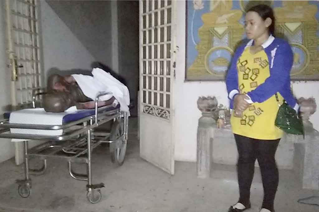 ក្រុមគ្រួសារបានបន្តទៀតថាដោយសារតែជនរងគ្រោះនឹករលឹកប្រពន្ធពេកនៅល្ងាចថ្ងៃទី១៣ខែមករាជនរងគ្រោះបានខ្ចីលុយមេការចំនួន៥ម៉ឺនរៀលដើម្បីជិះរថយន្តឈ្នួលទៅលេងប្រពន្ធនៅឯខេត្តព្រៃវែងខណៈពេលទៅដល់ផ្ទះប្រពន្ធមិនឃើញនៅផ្ទះក៏បានសុំលេខទូរស័ព្ទប្រពន្ធពីអ្នកជិតខាងដើម្បីទូរស័ព្ទសួរក៏ត្រូវប្រពន្ធប្រាប់ថាជាប់រវល់ទៅការមិត្តភក្កិនៅខេត្តស្វាយ ។ បន្ទាប់ពីនិយាយទូរស័ព្ទរួចហើយជនរងគ្រោះបានងូតទឹកហូបបាយពេលល្ងាចហើយបានចងមុងដេកនៅក្នុងប្រពន្ធជាធម្មតា។លុះដល់វេលាម៉ោង៣និង១៥នាទីទាបភ្លឺថ្ងៃទី១៤ខែមករាស្រាប់តែឃើញជនរងគ្រោះនៅវាលស្រែចម្ងាយពីផ្ទះរបស់ប្រពន្ធ ជាង១០០ម៉ែត្រកំពុងតែត្រូវភ្លើងឆេះសន្ធោសន្ធៅពេញខ្លួនបង្កឱ្យមានការភ្ញាក់ផ្អើលដល់អ្នកជិតខាងជួយពន្លត់ទម្រាំតែរលត់ត្រូវអណ្តាតភ្លើងឆាបឆេះខ្មៅរោលពេញខ្លួនអស់ទៅហើយភ្លាមៗនោះបានបញ្ជូនជនរងគ្រោះទៅសង្គ្រោះបន្ទាន់នៅមន្ទីពេទ្យបង្អែកស្រុកកំពង់ត្របែកដោយសារស្ថានភាពធ្ងន់ធ្ងរពេកក៏បានដឹកបញ្ជូនសង្គ្រោះបន្តមកមន្ទីពេទ្យព្រះកុសុមះហៅពេទ្យលោកសង្ឃនៅវេម៉ោ២និង៣០រសៀលតែអកុសលពេលមកដល់មន្ទីរពេទ្យបានដាច់ខ្សល់ស្លាប់បាត់ទៅហើយ។