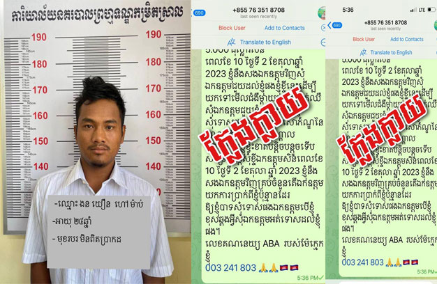 ក្រុមការងារព័ត៌មាន និងប្រតិកម្មរហ័ស នៃស្នងការដ្ឋាននគរបាលខេត្តកណ្តាល បានបញ្ជាក់ថា “ស្នងការដ្ឋាន នគរបាលខេត្តកណ្តាល បានប្រកាសបដិសេធទាំងស្រុង លេខទូរស័ព្ទផ្លូវការលោកឧត្តមសេនីយ៍ទោ ស្នងការ មានតែមួយគត់ គឺ ០១៧ ៧៨៧ ៦៦៦។ ករណីនេះ ជំនាញកំពុងស្រាវជ្រាវ ចាត់វិធានការតាមផ្លូវច្បាប់…”។យោងតាមសារដែលជនសង្ស័យប្រើឈ្មោះលោកស្នងការនគរបាលខេត្តកណ្តាល ឆាតទៅខ្ចីលុយលោកអភិ បាលខេត្តកណ្តាល បានសរសេរថា “ខ្ញុំបាទសុំខ្ចីលុយឯកឧត្តម ចំនួន៥ពាន់ដុល្លារសិន ពេលខែ១០ ថ្ងៃទី០២ ខែតុលា ឆ្នាំ២០២៣ ខ្ញុំនឹងសងឯកឧត្តមវិញ។ សុំឯកឧត្តម ជួយដល់ខ្ញុំផង ខ្ញុំខ្ចីនេះ ដើម្បីយកទៅមើលជំងឺ ម្តាយក្មេក គាត់ឈឺ តើឯកឧត្តមយកការប្រាក់ពីខ្ញុំប៉ុន្មានដែរ? ឱ្យខ្ញុំបាទសុំទោសផងឯកឧត្តម បើខ្ញុំខុសឆ្គងអ្វី សុំឯកឧត្តមអត់ទោសដល់ខ្ញុំផង។ លេខគណនី ABA របស់ម៉ែក្មេកខ្ញុំ 003 241 803…”៕