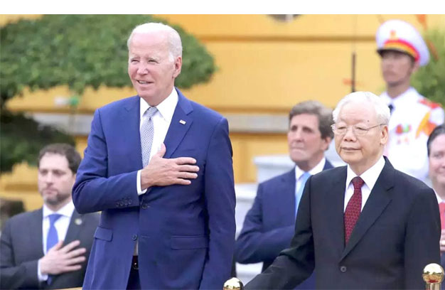 ប្រធានាធិបតីអាមេរិកលោកចូ បៃដិន  និងប្រធានបក្សកុម្មុយនិស្តវៀតណាម លោក Nguyen Phu Trong បាន​និយាយថាការទាមទារប្រកួតប្រជែងលើផ្លូវទឹកជាយុទ្ធសាស្ត្រត្រូវតែដោះស្រាយក្រោមបទដ្ឋានអន្តរជាតិ។មេដឹកនាំទាំងពីរបាននិយាយនៅក្នុងសេចក្តីថ្លែងការណ៍រួមថា យើងបានគូសបញ្ជាក់ពីការគាំទ្រដោយមិនងាករេ សម្រាប់ការដោះស្រាយជម្លោះដោយសន្តិវិធីស្របតាមច្បាប់អន្តរជាតិ ដោយគ្មានការគំរាមកំហែង ឬការប្រើ​ប្រាស់កម្លាំង ។