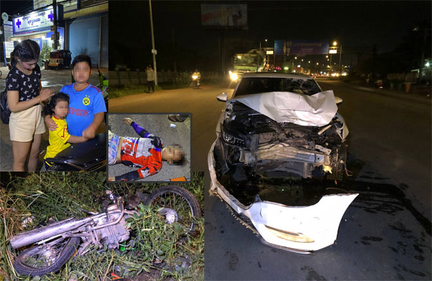 ភ្នំពេញ ៖ បុរសម្នាក់ បានក្រោកតាំងពីវេលាទៀបភ្លឺ ជិះម៉ូតូសំដៅទៅទិញបន្លែនៅផ្សារដើមគ យកមកទុកលក់ ដូរមុខរោងចក្រ ស្រាប់តែត្រូវរថយន្ត ១គ្រឿង បើកបរទាំងស្ថានភាពស្រវឹង និងប្រើប្រាស់ល្បឿនលឿនជ្រុល មកបុកចំពីមុខពេញទំហឹង បណ្តាលឱ្យស្លាប់ចោលប្រពន្ធ និងកូនតូច២នាក់ យ៉ាងអាណោចអាធ័ម។