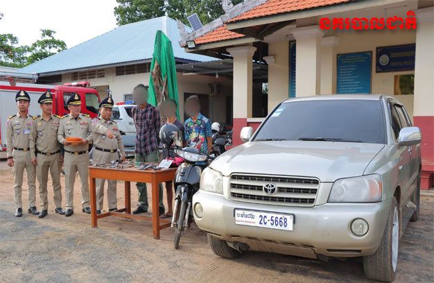 ជនសង្ស័យទាំង៣នាក់ ដែលត្រូវបានសមត្ថកិច្ចចាប់ឃាត់ខ្លួន រួមមាន ទី១-ឈ្មោះយ៉ា គីនី ភេទប្រុស អាយុ២៦ឆ្នាំ មុខរបរមិនពិតប្រាកដ មានលំនៅ ភូមិអូរអំបិល សង្កាត់អូរអំបិល ក្រុងសិរីសោភ័ណ ខេត្តបន្ទាយមានជ័យ។ ទី២-ឈ្មោះងួន តុលា ភេទប្រុស អាយុ២៩ឆ្នាំ មុខរបរមិនពិតប្រាកដ មានលំនៅ ភូមិគោរដ្ឋាន សង្កាត់ អូរអំបិល ក្រុងសិរីសោភ័ណ ខេត្តបន្ទាយមានជ័យ និងទី៣-ឈ្មោះញឹប តុលា ភេទប្រុស អាយុ១៦ឆ្នាំ មុខរបរមិនពិតប្រាកដ មានលំនៅ ភូមិទំពរ ឃុំត្រពាំងគ ស្រុកជើងព្រៃ ខេត្តកំពង់ចាម។