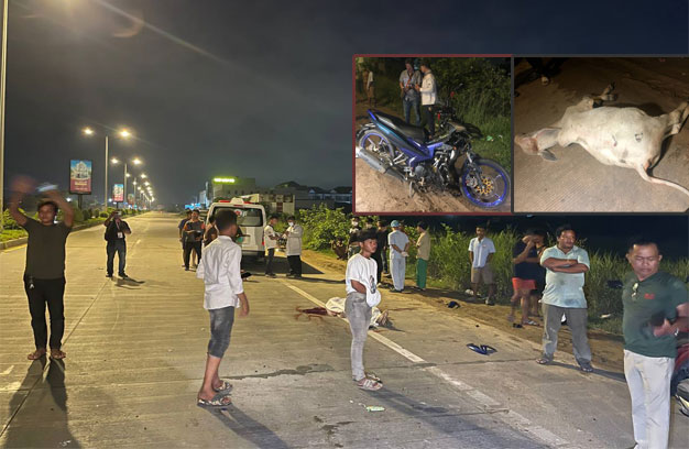 ភ្នំពេញ ៖ បុរសម្នាក់ ជិះម៉ូតូក្នុងល្បឿនយ៉ាងលឿន រួចជ្រុលទៅបុកសត្វគោមួយហ្វូង ដែលកំពុងតែដើរឆ្លងផ្លូវ បណ្តាលឱ្យដួលបោកក្បាល ស្លាប់ភ្លាមៗនៅនឹងកន្លែងយ៉ាងអាណោចអាធ័ម ខណៈដែលសត្វគោ ១ក្បាល ក៏ងាប់នៅនឹងកន្លែងផងដែរ។