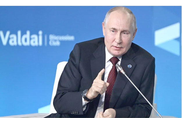 មេដឹកនាំរុស្ស៊ីកំពុងថ្លែងសុន្ទរកថានៅក្នុងសម័យប្រជុំពេញអង្គនៃកិច្ចប្រជុំប្រចាំឆ្នាំលើកទី២០ នៃក្លឹបពិភាក្សា Valdai ដែលត្រូវបានចូលរួមដោយអ្នកជំនាញ អ្នកនយោបាយ អ្នកការទូត និងអ្នកសេដ្ឋកិច្ចមកពី ៤២ប្រទេស។លោកពូទីន បានអះអាងថាជាទូទៅ ស្ថានការណ៍មានស្ថិរភាព។យើងបានជម្នះរាល់បញ្ហាដែលទាក់ទងនឹងការដាក់ទណ្ឌកម្មហើយបានចាប់ផ្តើមដំណាក់កាលបន្ទាប់នៃការអភិវឌ្ឍន៍ សេដ្ឋកិច្ចដោយឈរលើមូលដ្ឋានថ្មីមួយ ដែលមានសារៈសំខាន់ជាមូលដ្ឋាន។យើងកំពុងដោះស្រាយ។ ខ្ញុំមានហេតុផលក្នុងការជឿថាយើងនឹងស៊ូទ្រាំនៅពេលអនាគត។
