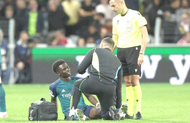 ខ្សែប្រយុទ្ធ Bukayo Saka របស់ក្លឹបកាំភ្លើងធំ Arsenal ត្រូវបានដកចេញពីការប្រកួតរបស់ក្រុមជម្រើស ជាតិអង់គ្លេសទល់នឹងអូស្ត្រាលី និងអ៊ីតាលី ដោយសាររបួសសរសៃពួ។នេះបើយោងតាមការចេញផ្សាយ របស់បណ្តាញសារព័ត៌មានប៊ីប៊ីស៊ី។