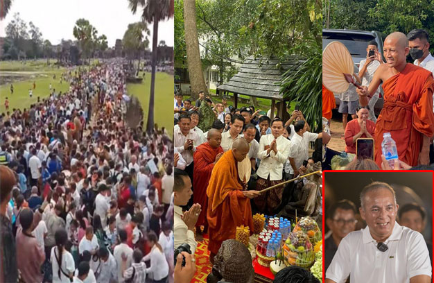ខេត្តសៀមរាប ៖ ខណៈដែលព្រះសង្ឃធុតង្គ ចន្ទមុនី ដែលគេល្បីថាចាលោកឪសួង ទី២ ទេវតាដើរដី មានបារមី ខ្លាំងពូកែ និមន្តទៅខេត្តសៀមរាប សម្តែងព្រះធម៌ទេសនា ក្នុងពិធីបុណ្យកឋិនទាន នៅវត្តអង្គរខាងជើង ផ្អើល ពុទ្ធបរិស័ទភ្លូកទឹកភ្លូកដី ទៅថ្វាយបង្គំពេញបរិវេណប្រាសាទអង្គរវត្ត នោះ បានធ្វើឲ្យក្រើកខ្ទរដល់ដីចម្ការជើងភ្នំ គូលែន របស់លោកខឹម វាសនា  ប្រធានគណបក្សសម្ព័ន្ធប្រជាធិបតេយ្យ ថ្លែងចំអកឲ្យព្រះសង្ឃធុតង្គ ចន្ទមុនី ថាជាទេវតារុកដី ផ្លិតបក់ ក្លាយជាផ្លិតទិព្វ ។