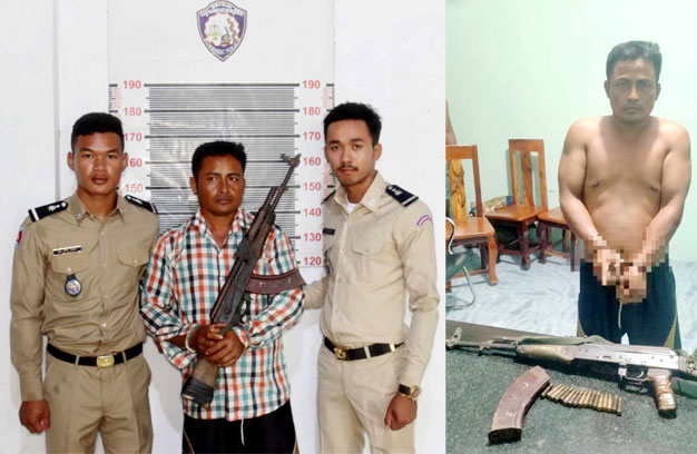 ខេត្តកំពង់ស្ពឺ ៖ បុរសម្នាក់ បានយកកាំភ្លើងអាកា មករុំក្នុងក្រមា រួចស្ពាយជិះម៉ូតូតាមផ្លូវ នៅពេលយប់ លុះត្រូវ សមត្ថកិច្ចល្បាតប្រទះឃើញ ឃាត់សាកសួរ បានព្យាយាមជិះរត់គេច លុះសមត្ថកិច្ចដេញតាមទាន់ បានទាញកាំ ភ្លើងបាញ់សំដៅសមត្ថកិច្ច ចំនួន ៤គ្រាប់ តែសំណាងល្អ មិនផ្ទុះ ទើបត្រូវសមត្ថកិច្ចចាប់វាយខ្នោះ នាំយកទៅ ចាត់ការតាមច្បាប់។