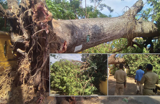 លោកមេប៉ុស្តិ៍កំពង់ធំ បានឱ្យដឹងថា នៅព្រឹកថ្ងៃកើតហេតុ មិនមានខ្យល់ឬភ្លៀងអ្វីទេ ប៉ុន្តែស្រាប់តែដើមឈើ នោះ បានបាក់រលំទាំងឫស របើកទាំងគល់ដួលតែម្តង។