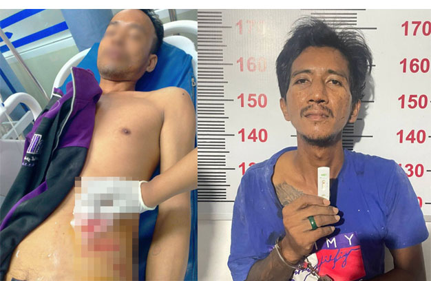 ភ្នំពេញ ៖ ជនសង្ស័យម្នាក់ ឃើញបុរសជាសន្តិសុខឯកជនម្នាក់ សម្លឹងមើលមុខរបស់ខ្លួន ស្រាប់តែផ្ទុះកំហឹង ទាញកូនកាំបិតចុងស្រួច ចាក់បុរសជាសន្តិសុខ ១កាំបិត បណ្តាលឱ្យធ្លាយពោះ រងរបួសយ៉ាងធ្ងន់ និងត្រូវបាន ដឹកបញ្ជូនទៅសង្គ្រោះនៅមន្ទីរពេទ្យភ្លាមៗ។ ចំណែកជនដៃដល់ ត្រូវបានសមត្ថកិច្ចចាប់វាយខ្នោះ នាំយក ទៅចាត់ការតាមច្បាប់។