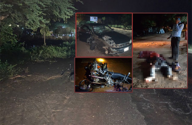 ខេត្តឧត្តរមានជ័យ ៖ បុរសជាគ្រូបង្រៀនម្នាក់ បានជិះម៉ូតូក្នុងល្បឿនលឿន រួចជ្រុលចូលចំណែកផ្លូវម្ខាងទៀត ធ្វើឱ្យរថយន្ត ១គ្រឿង ជ្រុលបុកយ៉ាងពេញទំហឹង បណ្តាលឱ្យស្លាប់នៅនឹងកន្លែងយ៉ាងអាណោចអាធ័ម ចំណែក អ្នកបើកបររថយន្ត បានចុះរត់គេចខ្លួនបាត់។