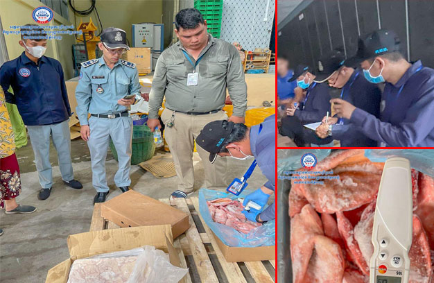 ភ្នំពេញ ៖ កម្លាំងជំនាញនៃអគ្គនាយកដ្ឋាន ក.ប.ប សហការជាមួយតំណាងសមាគមអ្នកចិញ្ចឹមសត្វកម្ពុជា និងអាជ្ញាធរដែនដី បានចុះឆែកឆេរទីតាំងឃ្លាំងស្តុកទុក និងចែកចាយផលិតផលសាច់បង្កក មួយកន្លែង នៅខណ្ឌមានជ័យ និងបានរកឃើញសាច់បង្កក ចំនួន ៤៧១០គីឡូ ក្រាម ពុំមានប្រភពច្បាស់លាស់ និង ឯកសារត្រឹមត្រូវ។